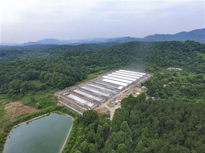 孟夏時節,筆者來到正在建設中的湘佳股份中和鋪養殖基地,但見機聲隆隆,熱鬧非凡,100多位當地民工正在各自的崗位上緊張有序地施工。湘佳中和鋪養殖基地位于湖南省石門縣新鋪鎮中和鋪村的金家埡,于2019年9月正式開建。該基地分為兩大養雞場,共22棟雞舍,其中一分場9棟,二分場13棟,總投資1.3億元。原計劃2020年5月建成投產,由于受新冠肺炎疫情影響,工程進度一度延緩。為了加快建設進度,促使兩大養殖基